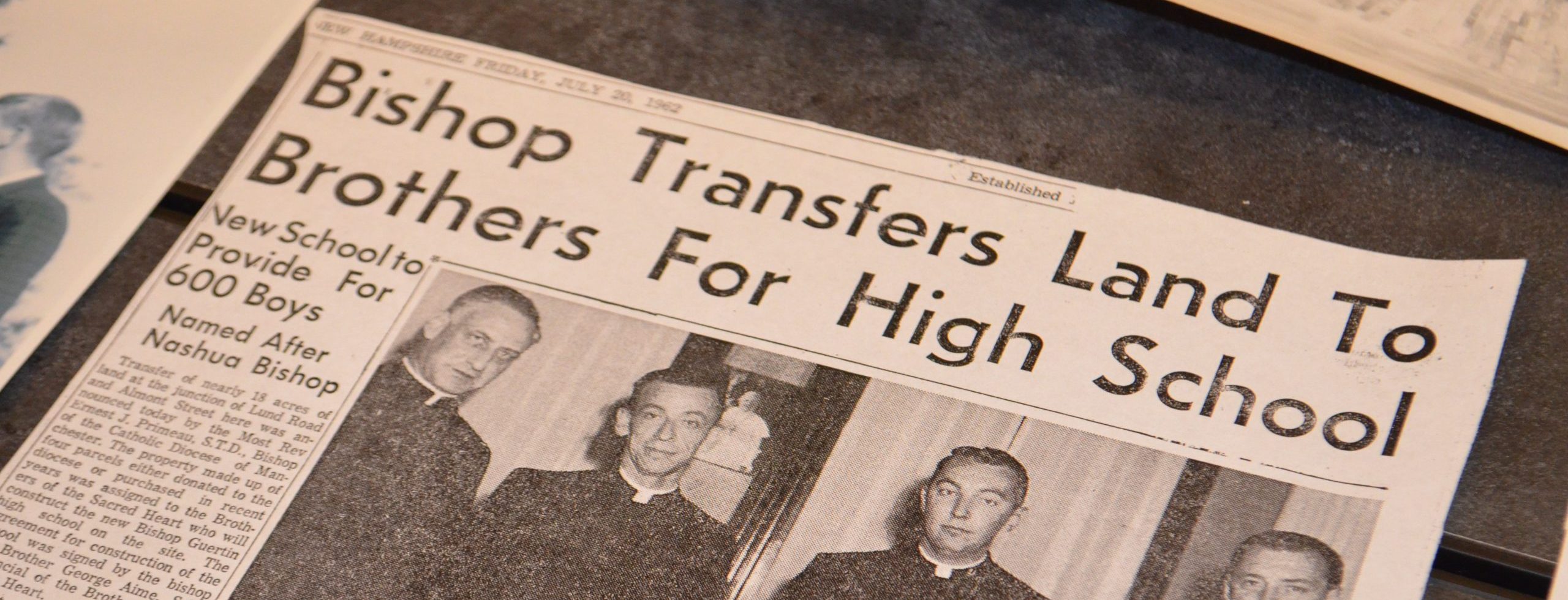 The Brothers of the Sacred Heart initially arrived in Nashua in 1891, following the invitation of Father Milette, to take charge of the elementary school in St. Louis Parish. Most people simply refer to the school by saying “I went to the brothers on Vine St.” It was part and parcel of Catholic life in Nashua in the first half of 20th century. In the late 1950s, although a number of high schools for girls existed locally, no high school for boys existed. Bishop Primeau approached the Brothers of the Sacred Heart, already known for their educational work in Nashua, and asked that they take up the direction of a new school. The Bishop drew on the efforts of the parishes of the region to provide the initial land and funding to begin the construction.